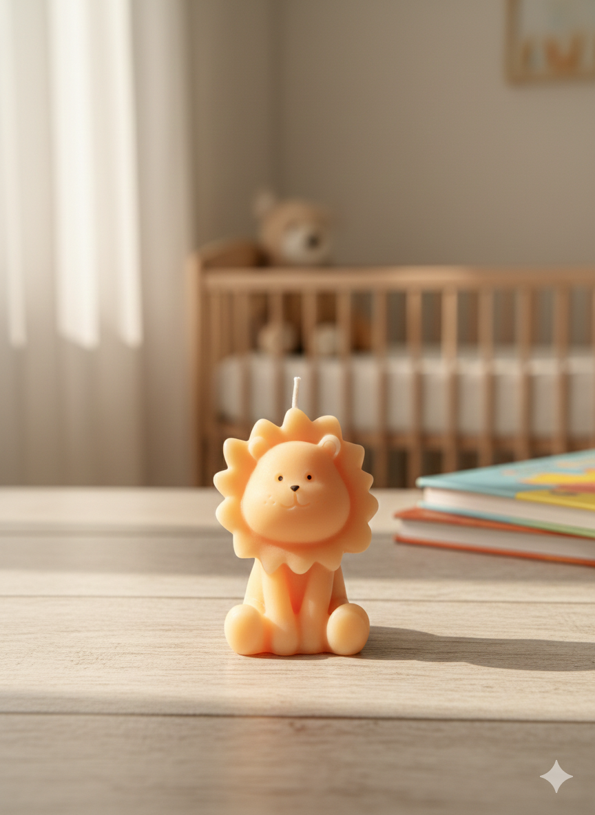 LUKTFRI LØVE-lys / dåp/fødsel/safari/babyshower/barnebursdag/nattverd/konfirmasjonsgaver